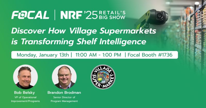 We’re thrilled to announce that Robert Belsky, VP of Operational Improvement/Programs, and Brandon Brodman, Senior Director of Program Management at Village Super Market, will be joining Focal Systems (booth #1736) at NRF 2025 for a Meet & Greet AND Q&A session on Monday, January 13th, from 11:00 AM to 1:00 PM. Discover how Village Supermarkets is revolutionizing retail operations with Focal Systems’ AI-powered shelf cameras, achieving impressive results such as: